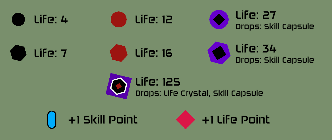 Use mouse to pickup Skill Capsules and Life Crystals.